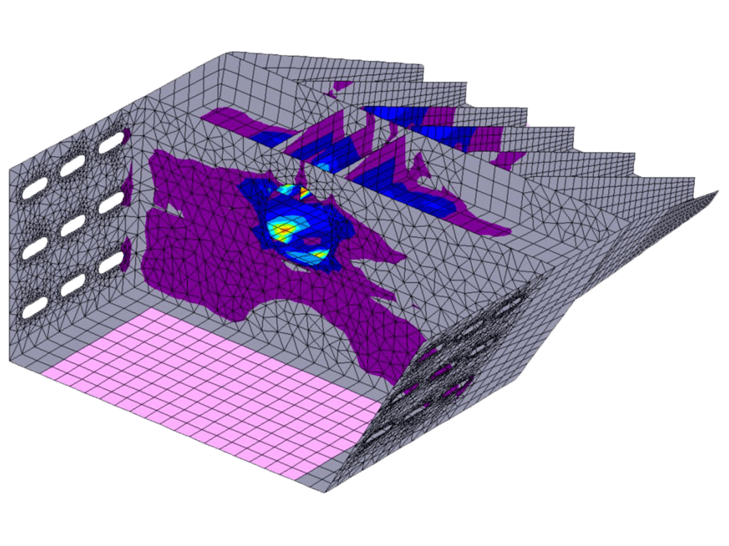 - Unstructured and Structed powerfull mesh generator is available, handling arbitrary shapes with internal boundaries, holes and constraints